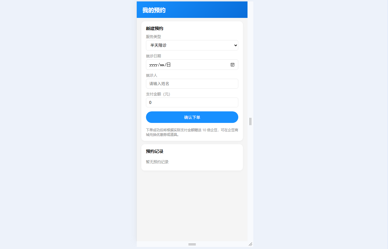 ● 用户中心与工具:管理个人信息、企豆余额,创建/查看/取消陪诊订单,集中管理收藏的陪诊师,查看历史预约与企豆记录,支持账号设置