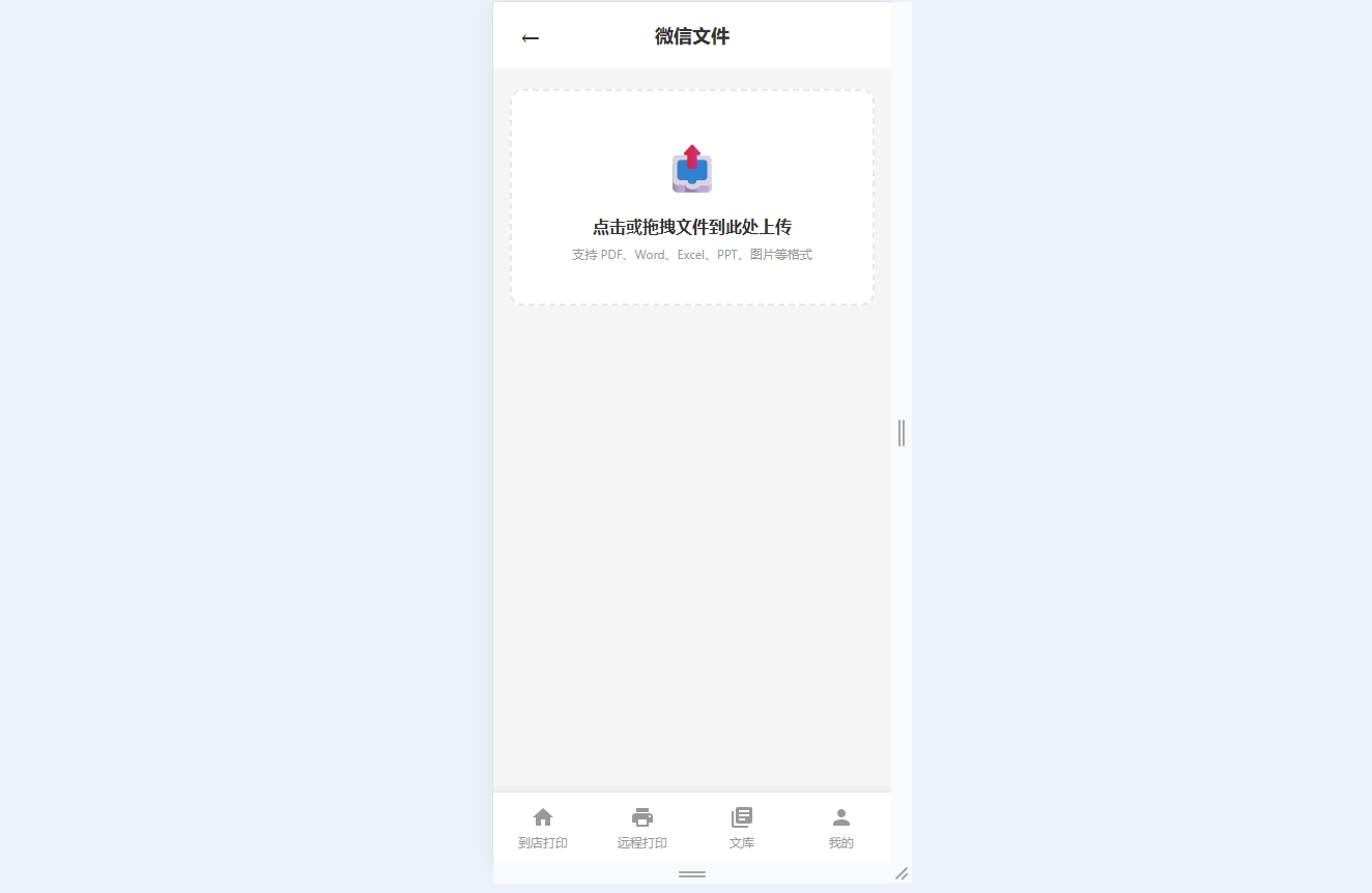 ● 支持多渠道文件上传(微信/手机文件,带预览)