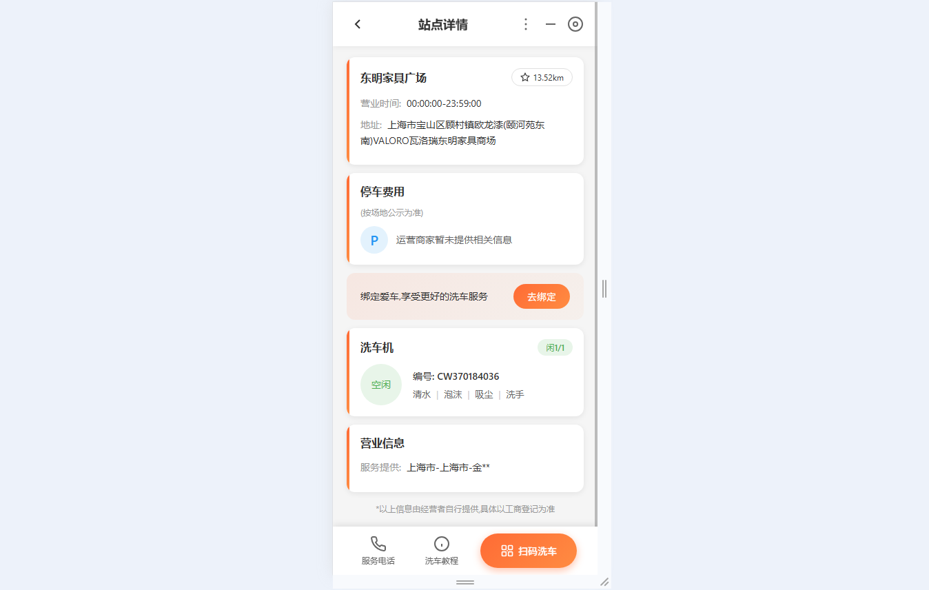 贴心服务支持(客服电话、洗车教程、扫码启动)