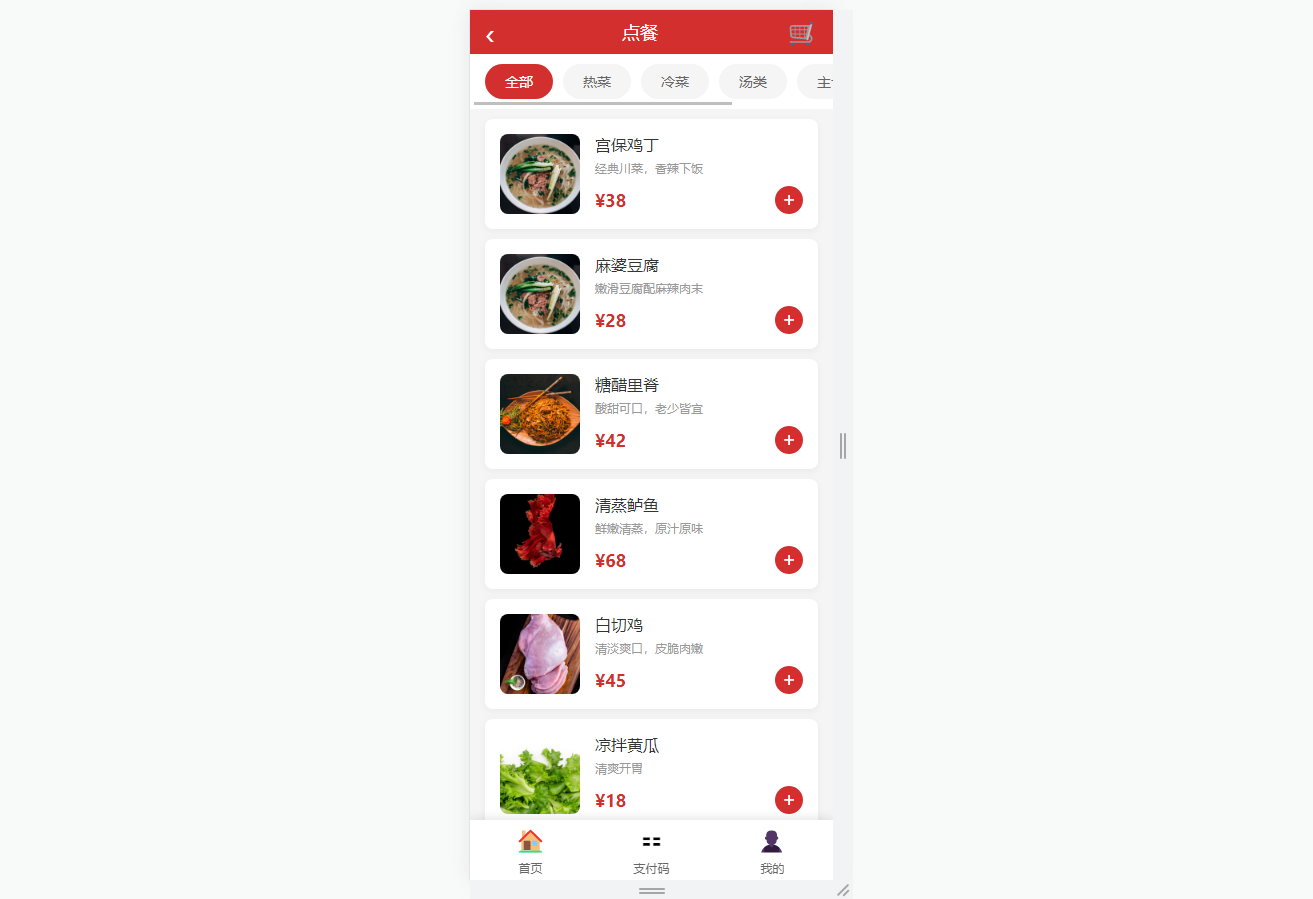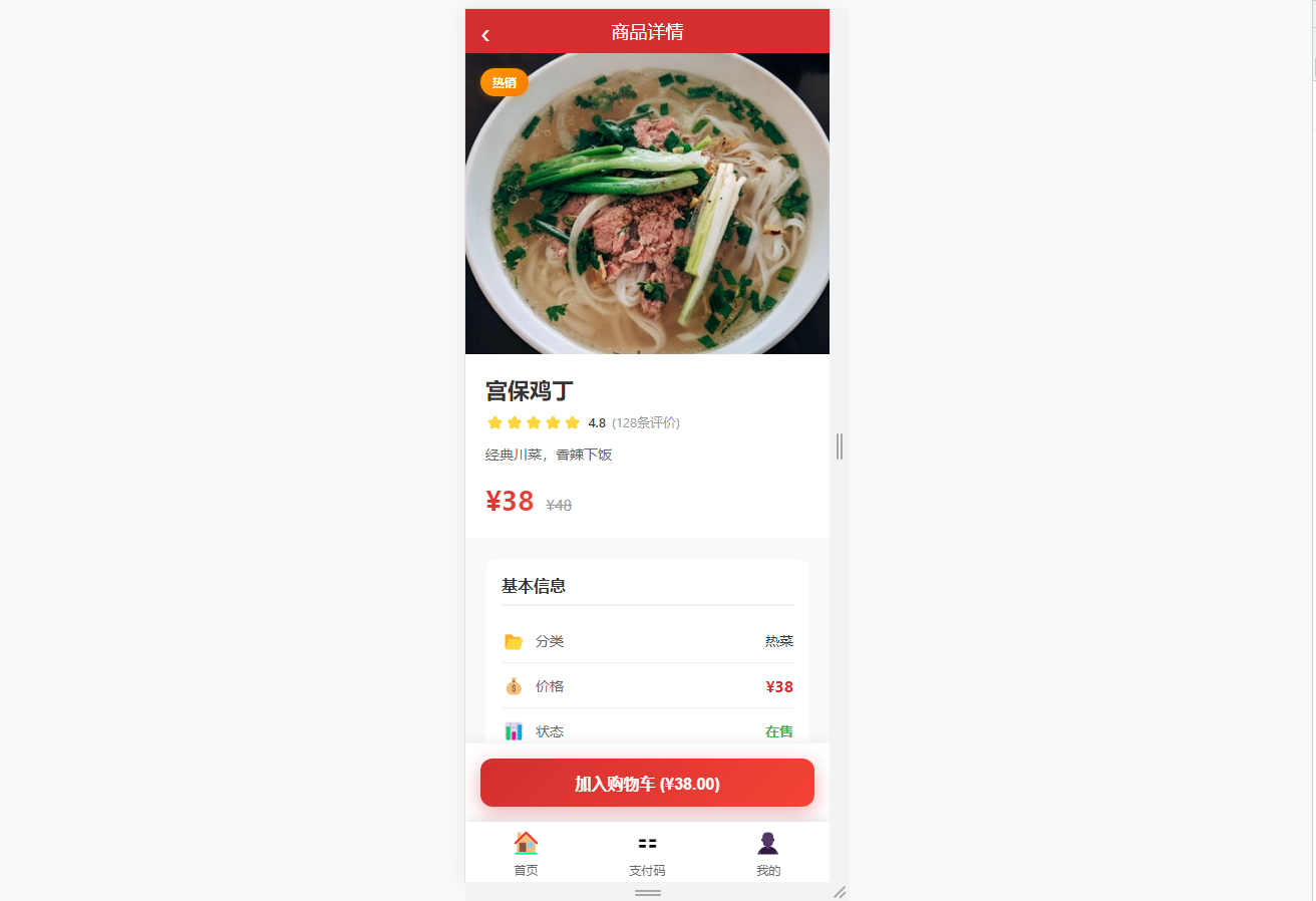 ● 功能闭环完整:覆盖堂食、外卖、自提三种用餐方式,从浏览菜品到支付完成流程顺畅,个人中心功能齐全