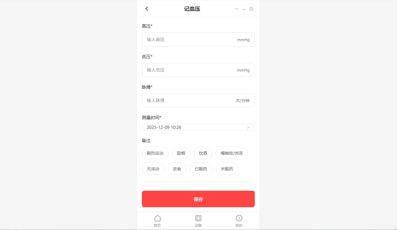 支持手动记录与设备绑定双模式,操作灵活便捷