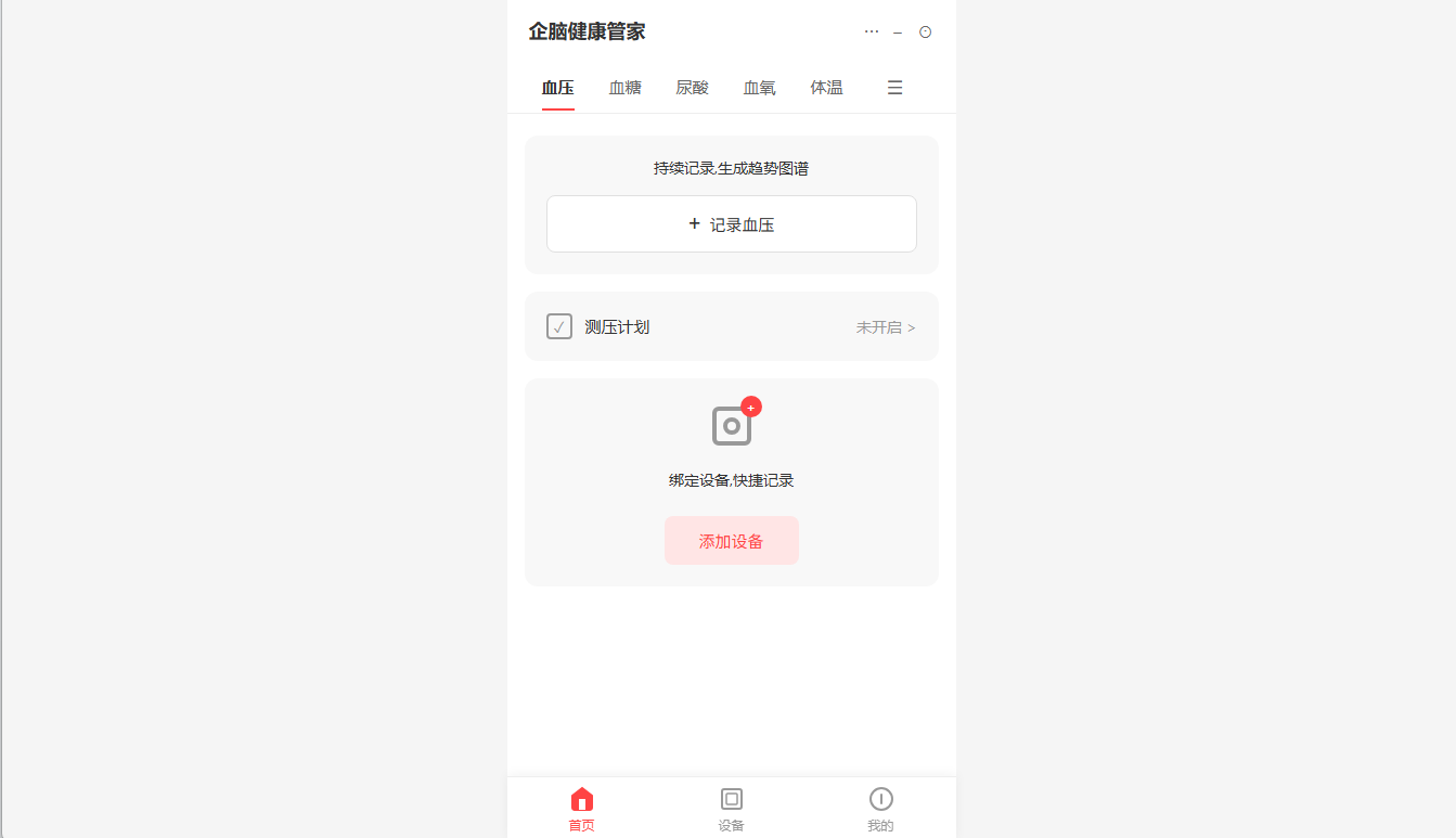 提供设备管理功能,支持添加 / 绑定健康监测设备