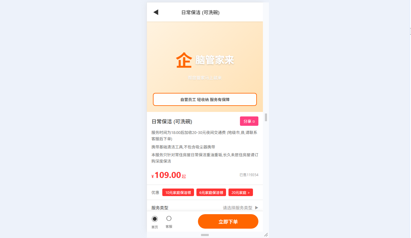日常保洁低至38元/小时,性价比高
