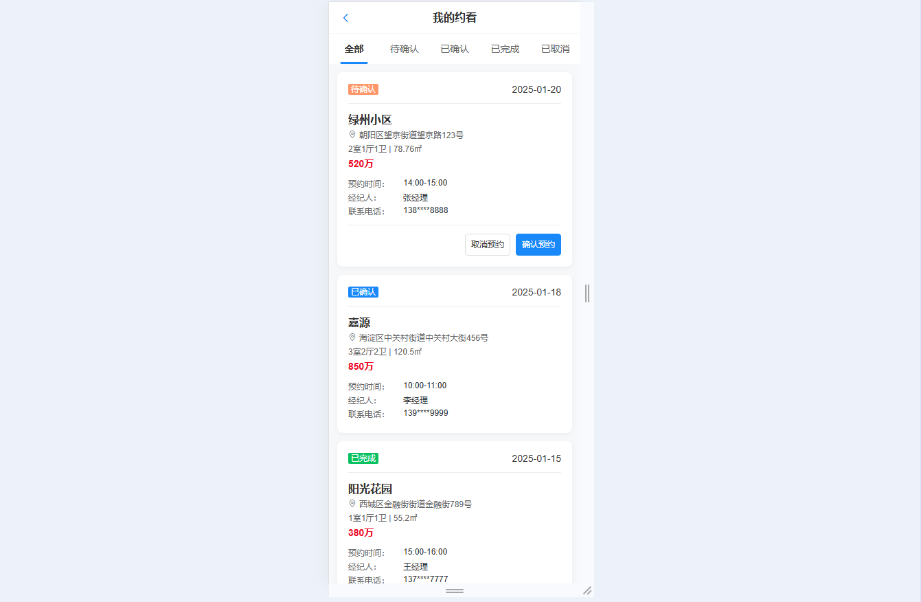 ● 信任体系完善:优选优质房源与经纪公司,标注"X家已核验"标识,安心预约服务提升看房效率与安全性