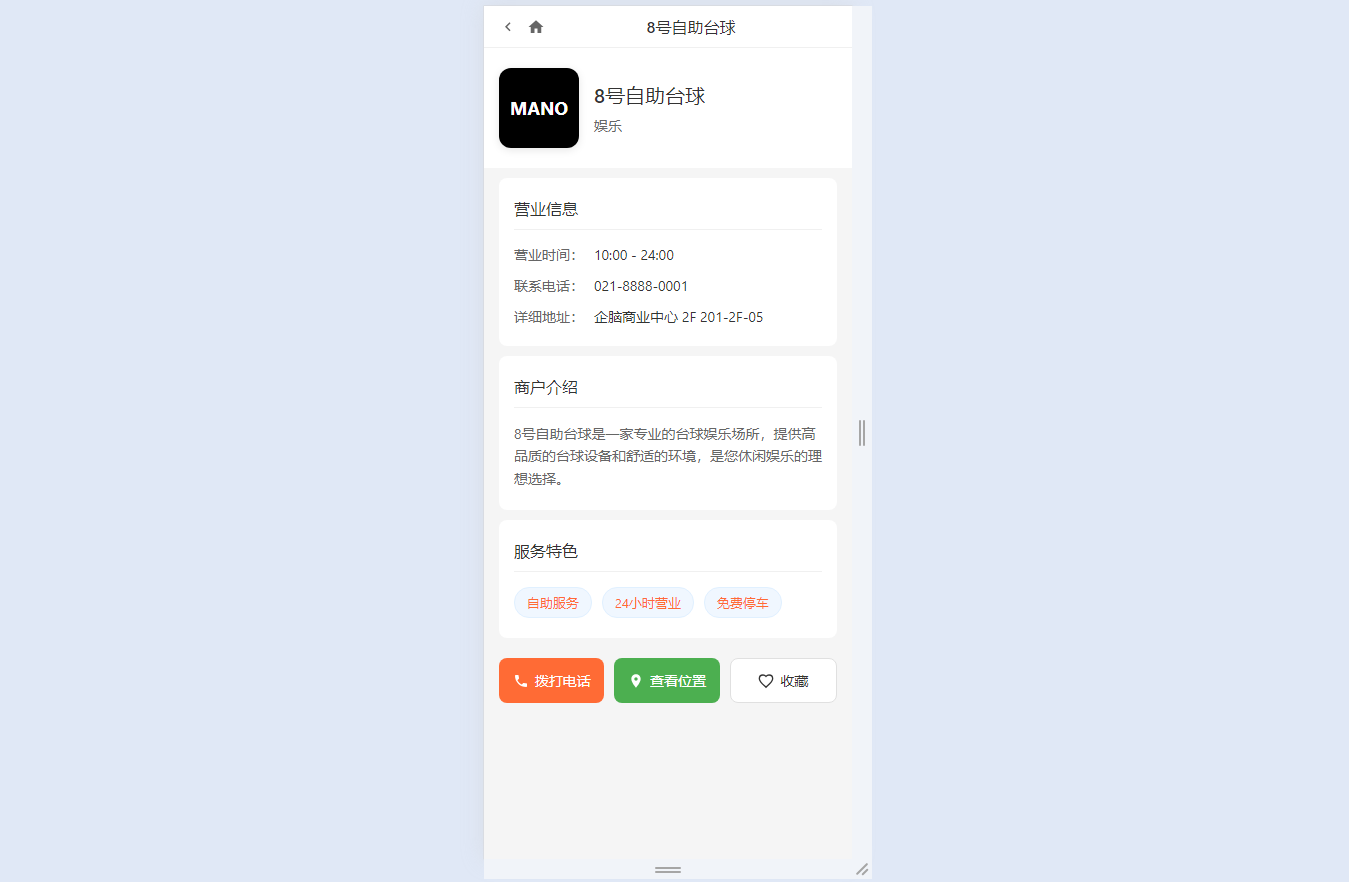 ● 商户服务平台 提供商户搜索地图查看功能 按楼层分类排序筛选商户 展示商户基本信息营业时间地址介绍 支持拨打电话查看位置收藏商户
